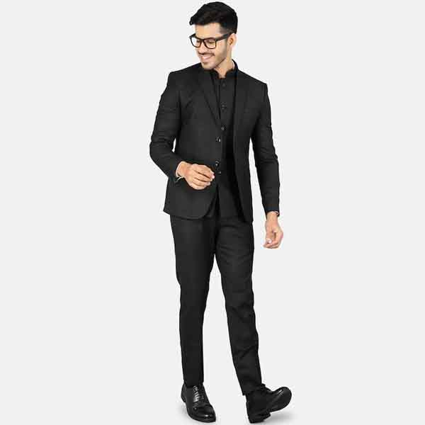 Black solid waistcoat, has a short button placket, sleeveless and two pockets
